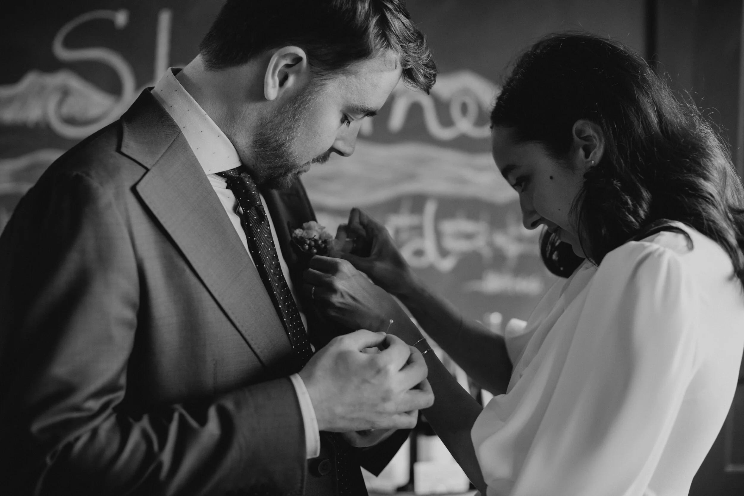 One of our least favorite parts of our job is saying goodbye to folks we’ve grown close with after we have photographed their wedding and delivered their images. Thanks to the COVID pandemic, lots of couples we worked with in 2020 ended up hosting smaller, more intimate weddings - sometimes with just the two of them - with plans to host a larger party of sorts when it was safer to do so. Maddie and Mark had a tiny little wedding in Maddie’s parents’ backyard last September with just their closest friends and family, and decided that they would continue with their original plans at Shelburne Vineyard a year later if possible. When we arrived in Shelburne last Saturday, we were struck by how similar everything about the day felt: the quality of light, the temperature, the mood was just as we remembered it being almost exactly a year ago and it got us so excited to get the day started. Meeting Maddie and Mark at her parents’ house again we were introduced to a group of friends, some of whom we’d met previously but some we hadn’t. It felt like a really beautiful moment, getting to know a little bit more about these people we adored photographing last year through the people they surround themselves with, and their friends welcomed us into the party with open arms. Without the need for a formal ceremony the entire day took on a different energy, and we could sense it in how relaxed everyone was. It truly felt like the reunion that couldn’t happen last year, one that these two surely deserve after such a long period of not knowing whether it would end up happening or not. After Maddie and Mark exchanged anniversary gifts in her parents’ backyard, everyone headed to the vineyard and caught a beautiful sunset among the grapevines before settling in under the tent for a family style dinner. The mood for the rest of the night was casually elegant, thanks in part to Stitchdown Farms’ floral arrangements, The Hindquarter’s open flame grills wafting delicious smells into the tent, and of course Shelburne Vineyard’s own wines. It felt like a triumphant celebration of the present that acknowledged that we’re not in the clear yet, but also that we’re here still and that alone is worth celebrating.